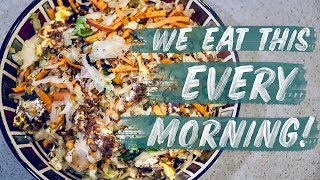 But add little nutritional yeast to s. We make this for breakfast every single morning. From last night's leftovers a few splashes.